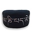 Schwarzes Meditationskissen mit grauem gesticktem Mantra-Motiv herum; Om Mani Padme Hum, das meistgesprochene Mantra im tibetischen Buddhismus. Es ist eine Anrufung des Bodhisattva Avalokitesvara, der Jewel-Lotus-Höhe einstellbar.
